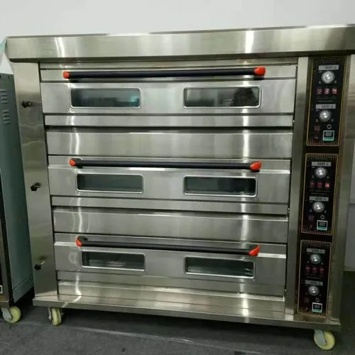 Chefglobe Gas Pizza Deck Oven Three Deck Nine Tray ( 3 Deck 9 Tray ) Digital Baking Oven, Suitable for preparing freshly baked goodsused in commercial kitchens, bakeries, cafes, and restaurants for baking various food items such as pastries, bread, pizzas, and cookies.