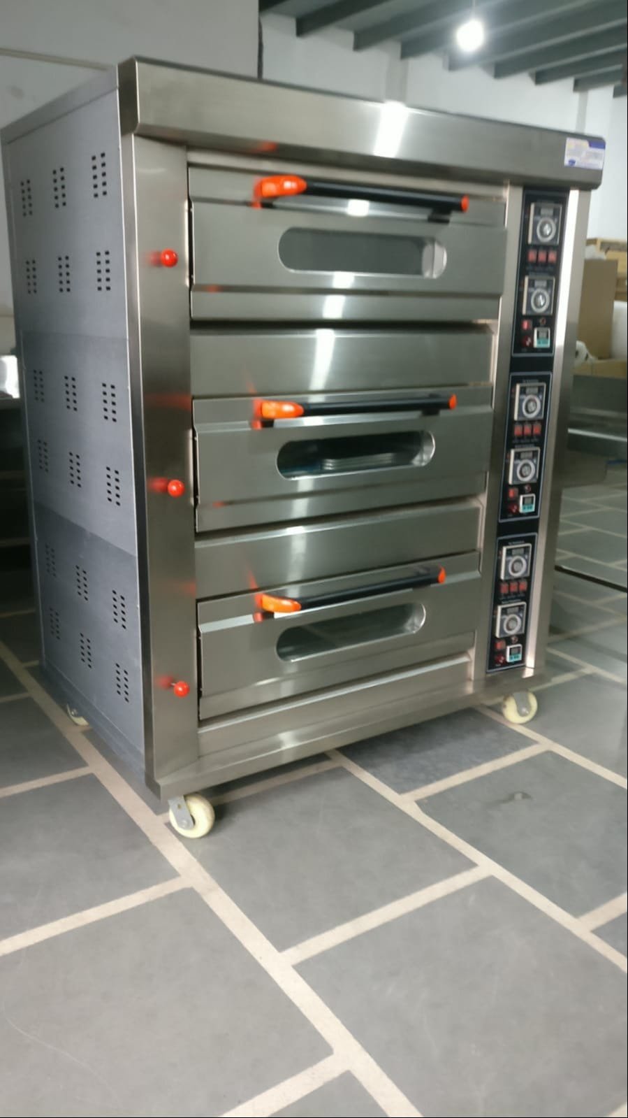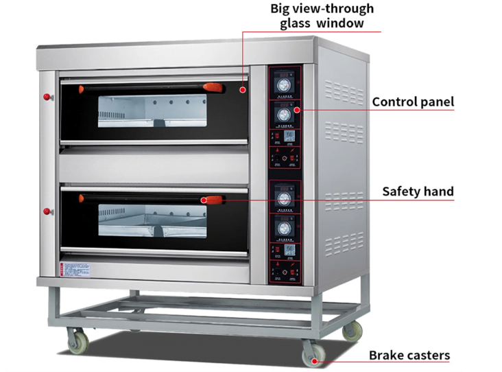 Chefglobe Gas Pizza Deck Oven Three Deck Six Tray ( 3 Deck 6 Tray ) Digital Baking Oven, Suitable for preparing freshly baked goodsused in commercial kitchens, bakeries, cafes, and restaurants for baking various food items such as pastries, bread, pizzas, and cookies.