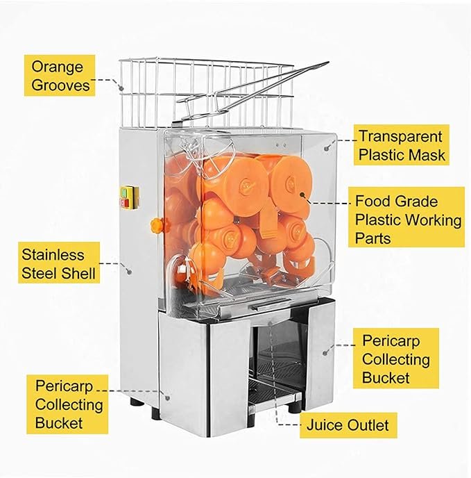 Chefglobe Automatic Orange and Pomegranate Juice Machine is a specialized juicing appliance designed to extract fresh, pulp-free juice efficiently and hygienically. This machine is ideal for commercial establishments such as juice bars, restaurants, cafes, and food courts, ensuring quick service and high-quality output.