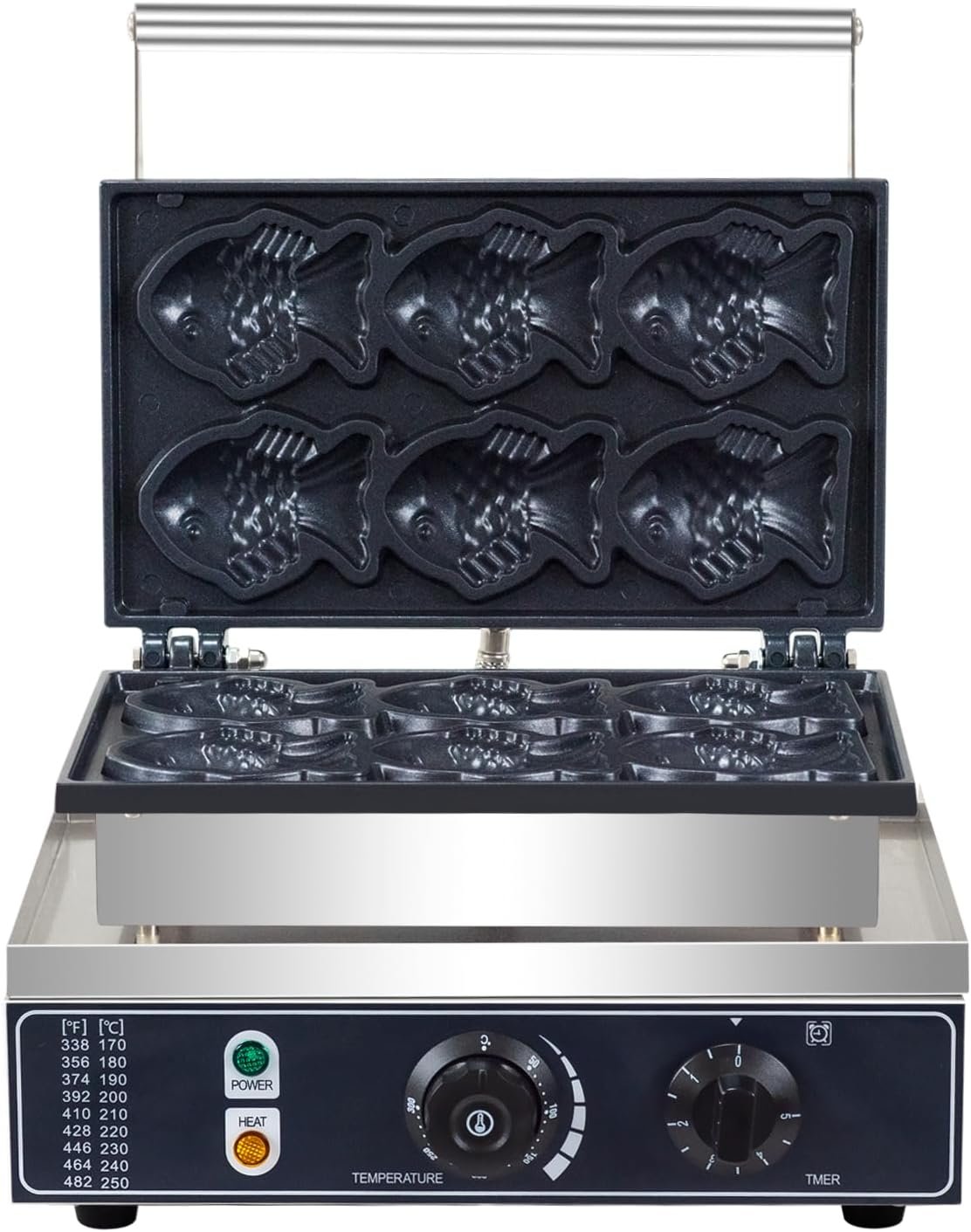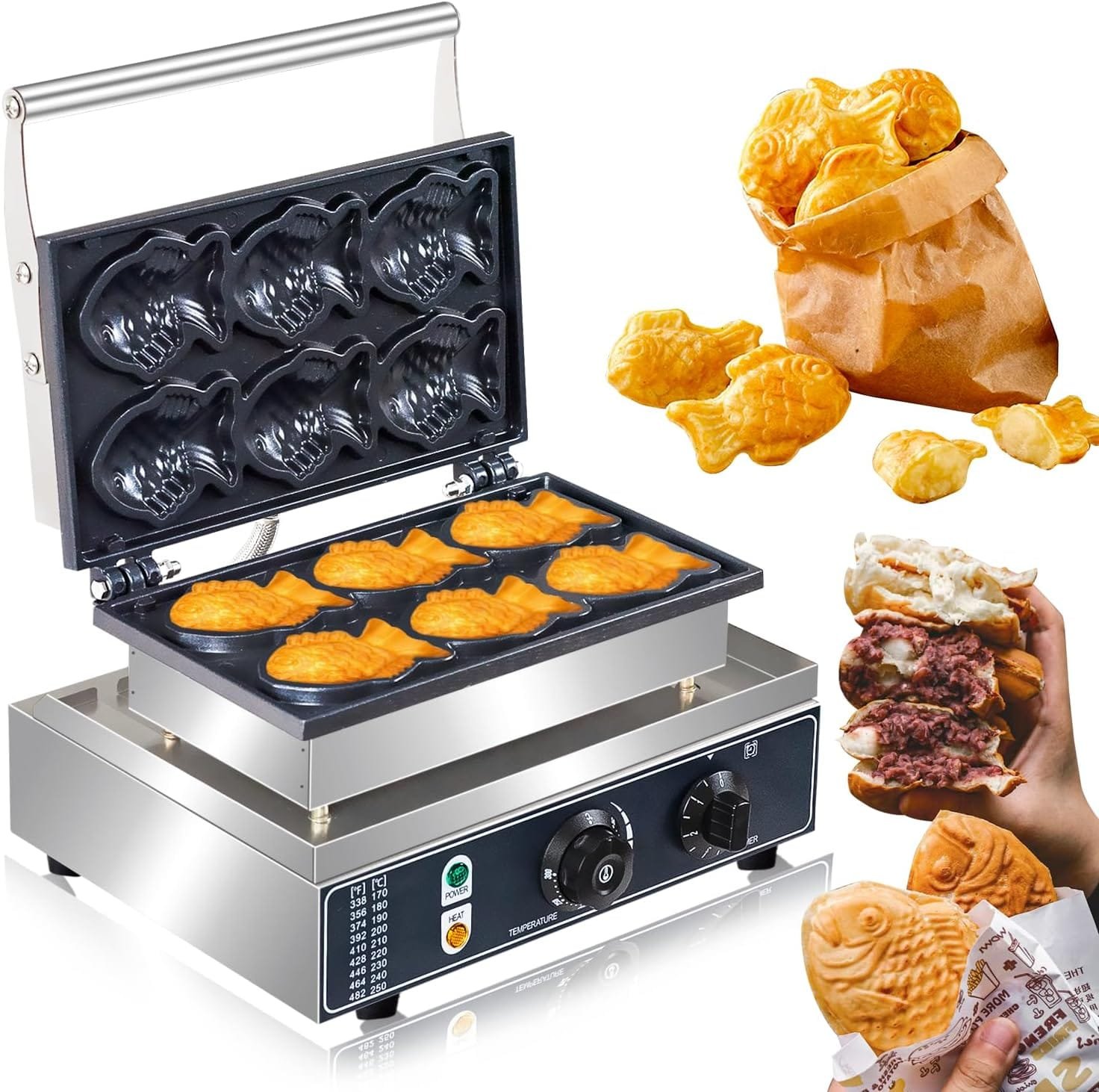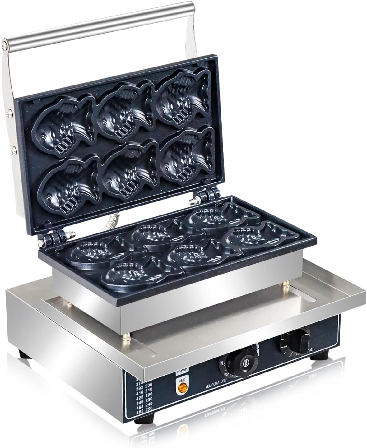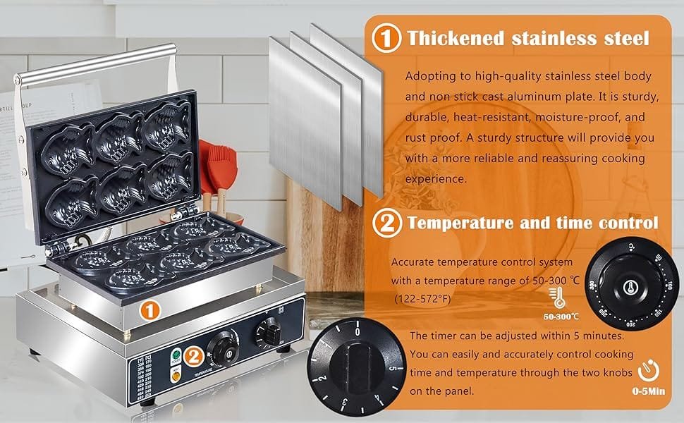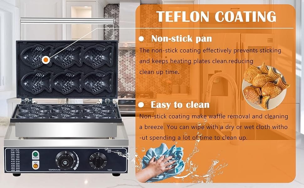 Chefglobe Crisp Fish Waffle Maker Machine is a kitchen appliance designed to create traditional Japanese fish-shaped waffles known as Taiyaki. Featuring non-stick cooking plates and easy temperature control, it allows you to make crispy, golden-brown waffles filled with sweet or savory fillings like red bean paste, custard, chocolate, or cheese.