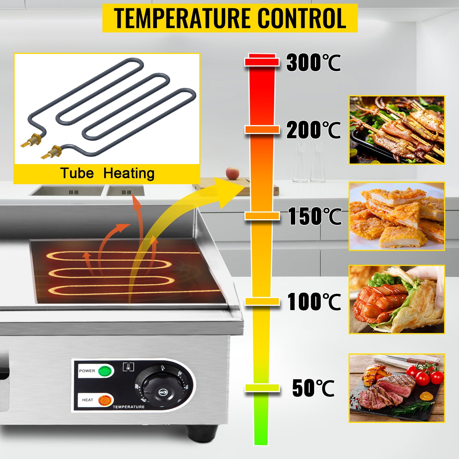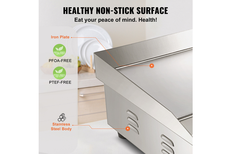 - 4.4kW Power Output: With a high power rating, the griddle plate can quickly reach and maintain cooking temperatures, allowing for efficient and fast cooking of a wide range of food items.