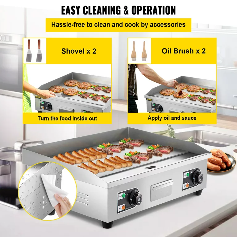 - Easy to Clean: Smooth, flat surfaces and removable drip trays make the griddle plate easy to clean and maintain, promoting hygiene and sanitation in the kitchen.