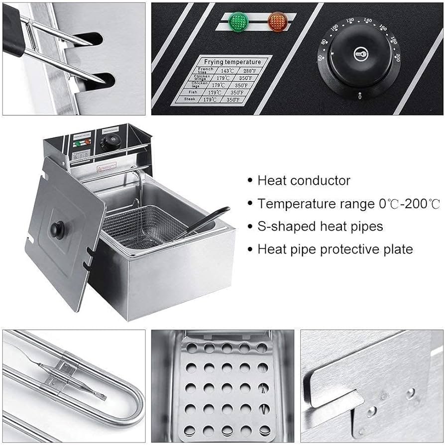 Heating Element: An electric heating element is used to heat the oil to the desired temperature for frying. Some models may have adjustable temperature controls for precise cooking.