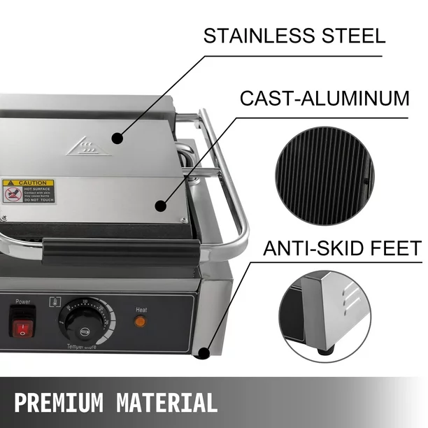 Gas Commercial Sandwich Griller Machine Single Head 14 Inch