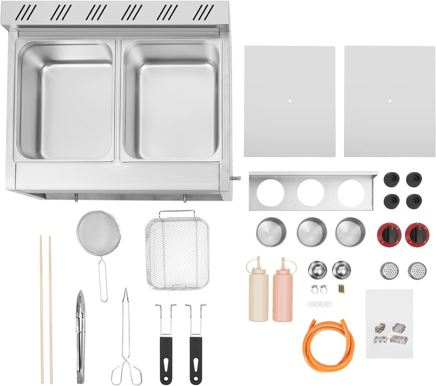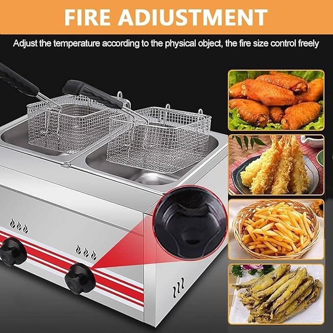 Chefglobe Gas Deep Fryer Double Tank 16 Liter Tank is a high-performance cooking appliance designed for frying large quantities of food in commercial kitchens. With two independent tanks, it offers flexibility and efficiency, making it ideal for restaurants, fast food outlets, and catering businesses.