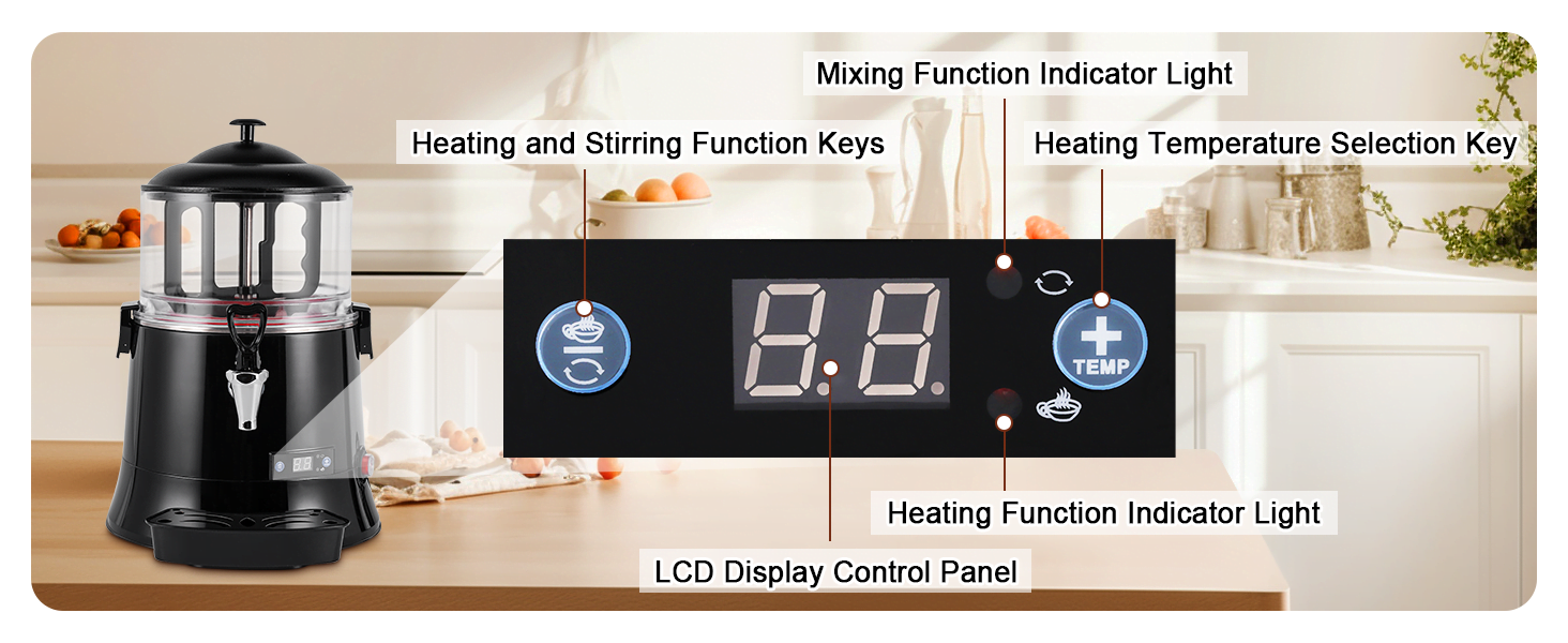 Chefglobe Hot Chocolate Dispenser 10 Liter is a specialized equipment designed to dispense and serve hot chocolate beverages in commercial settings such as cafes, restaurants, hotels, and convenience stores.