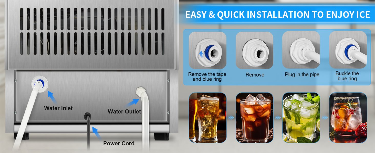 Commercial Ice Cube Machine 35 Kg / Day is a high-capacity appliance designed to produce large quantities of ice cubes efficiently, making it ideal for restaurants, bars, hotels, cafes, and catering businesses. These machines are built for durability, speed, and reliability to meet the demands of busy commercial establishments.