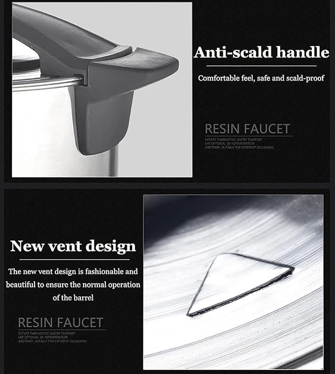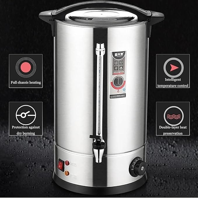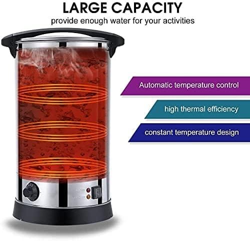 Chefglobe Electric Insulated Tea Coffee Boiler Urn is designed to brew, store, and dispense hot beverages like water, coffee, tea while maintaining their temperature for extended periods. Equipped with an insulated body and energy-efficient heating, it is ideal for hotels, offices, catering, and events. Its durable stainless steel construction ensures hygiene and long-lasting use. The urn features user-friendly controls, a spigot for easy pouring, and safety mechanisms like heat-resistant handles. Perfect for serving large groups efficiently, it keeps beverages warm without constant reheating.
