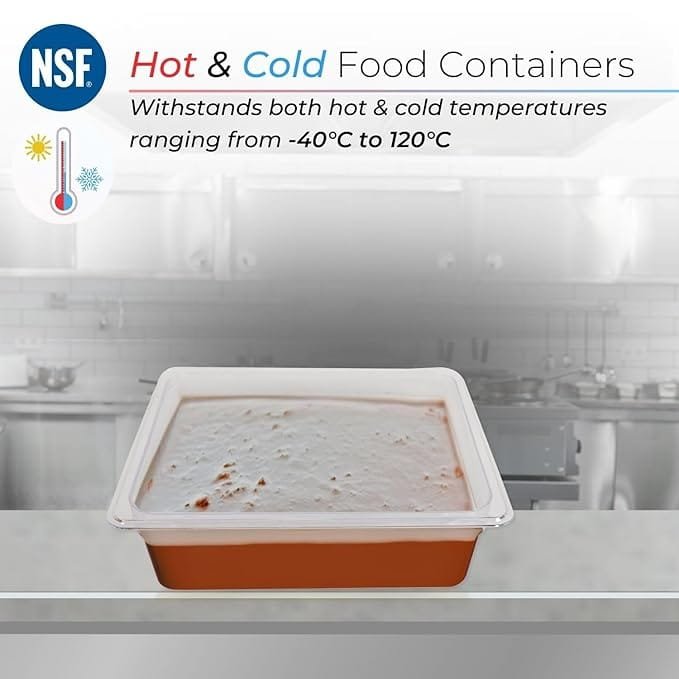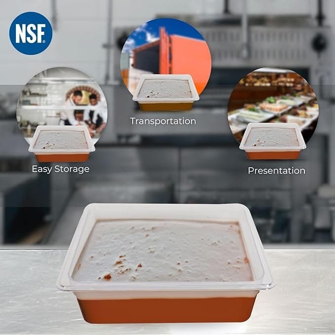 PC GN PAN (Gastronorm Pans) offer the perfect solution for seamless food storage, safe transportation, and elegant serving display. Designed to meet the demands of professional kitchens, they simplify operations with one versatile product. These PC Gastronorm Pans are NSF certified, meaning that they are rigorously tested to meet the highest quality and safety standards. Perfect for maintaining hygiene, they are food safe and provide peace of mind in any professional or commercial kitchen environment.