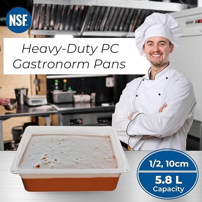 PC GN Pan 1/2 100mm – 10 Cm, NSF Grade Gastronorm Pan Polycarbonate, 5.2 Ltr Without Lid